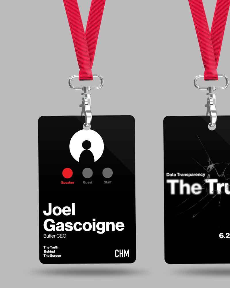 With the topic of Data Transparency, the conference design was set to discuss the truth deeper than just what is initially presented. When a company presents itself to its users, typically they try to only show the good side of the company, however with more and more companies having things to hide, a darker side of tech arises. The design’s intention is to provide more of what’s beneath the surface.
